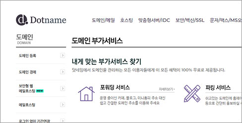 3쉽게 이용 가능한 도메인 부가 서비스!닷네임코리아에서는 네임서버 변경,파킹 서비스,포워딩 서비스,레코드 변경 서비스 등 다양한 부가서비스를 무료로 간단하게 이용하실 수 있게 구성되어 있습니다. 서비스 확인하기 |