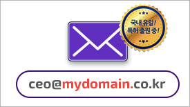 닷네임코리아 도메인이 특별한 이유 중 하나는 ceo@abc.co.kr 같은 내 도메인으로 구성된 메일주소를 쓸 수 있는 서비스를 국내에서 유일하게 무상으로 제공한다는 것입니다.