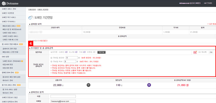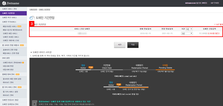 고객님의 도메인과 호스팅의 잔여 기간을 확인합니다.