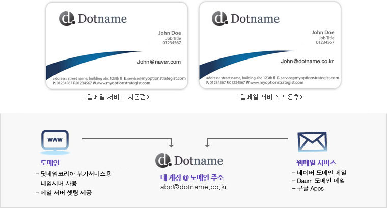 - 닷네임코리아에서 구입하신 도메인 주소를 사용하여 자신만의 메일 주소로 만들 수 있는 서비스입니다.