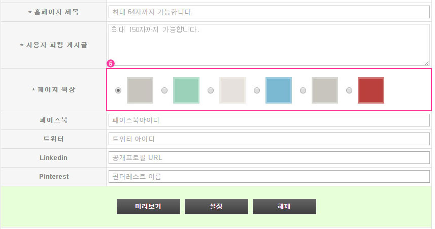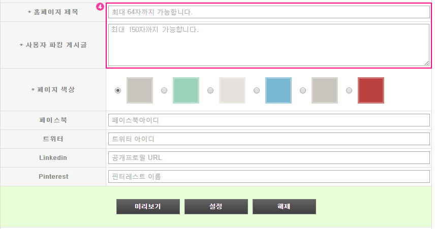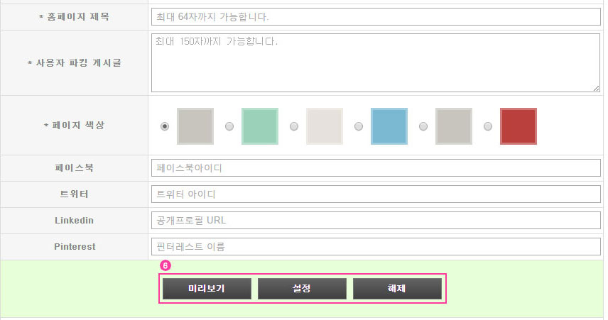 5. 파킹 페이지의 색상을 정하고 글을 작성합니다.